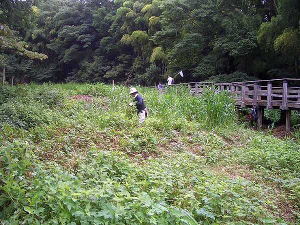 オオミゾソバに覆い被さっているカナムグラ取りを行いました。