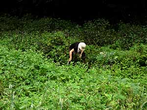 日時 2009/10/3(土) 14:00〜16:00 曇 場所 生田緑地 参加 岩田臣生、岩田芳美 稲刈りは秋霖の時期にぶつかるため土日の活動として行うことを前提とすると組み立てに苦労させられます。 今日が稲刈りの予定でしたが昨日まで「土曜日の午前中は雨」との予報が変わらず、明日の「日曜日の晴マーク」にかけることにして、変更することにしました。 このために参加できなくなった子どもたちには申し訳ないと思っています。 連日の雨で田圃にはたっぷりと水がたまっていると思われましたので、なんとか水を落としておくことにしました。 田圃に着くと、田圃には水が湛えられ、一番上の田圃のイネはかなり倒れていました。 ともかく、堰を全開にして、畦沿いに溝を掘って、田圃に水はあるがイネの根元には水が無いという状態にすることにしました。 また、平行してアメリカザリガニの採集も行い、1〜8cm×950匹を駆除しました。大部分が1〜4cm大でしたが、1回あたりの採集数は今までで最多でした。