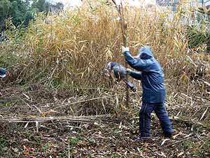生田緑地の谷戸のヨシ原のヨシは太くて長くて最適とのことでした。