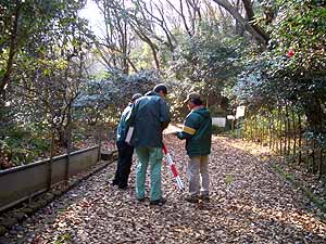 日時 2009/12/17(木) 10:00〜10:30 晴 場所 生田緑地 参加 小野(多摩区建設センター)、高津設備工業(株)、岩田芳美、岩田臣生 野鳥の森の水流の渇水期対策としてポンプ施設等の設置について多摩区建設センターと協議してきましたが、 8日(火)に北部公園事務所で実施可能な案についての説明を受け、合意しました。 この日は、ポンプアップした水を水流に流す場所について、工事業者も入れて現地で立ち会い協議を行いました。 工事によって水辺の生物にダメージを与えることの無いようにしなければならないからです。 その結果、お互いにイメージしていた放流位置が一致していなかったことが分かり、立ち会いをして良かったと双方が思うこととなりました。 工事は1〜2月の予定とのことで、直前に再度、確認しようと決めて分かれました。