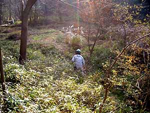しかし、上空をネザサや実生木で覆われた水流には、台所用品や空きビン、空き缶などのゴミや泥が溜まっていました。