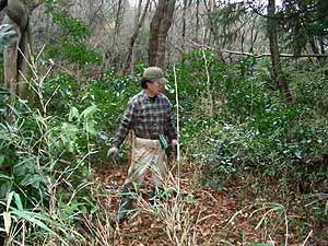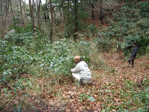アオキは1日目のような大きなものは無くなりましたが、所々に、まだ大きなアオキが2〜3mの長さの枝を広げていました。太さは直径が4cmもあるものが数本ありました。