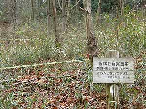 コナラ以外の小径木を残して、コナラの大径木を伐採していました。目標椊生にコナラ・クヌギという樹種に対しての意識が感じられません。