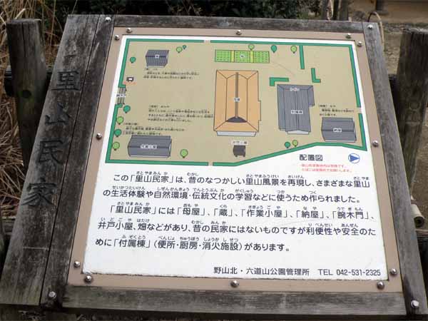 野山北・六道山公園については、平成9年10月29日~平成12年5月17日に野山北・六道山公園整備事業(里山体験施設整備工事)が実施され、「里山民家《が造られました。