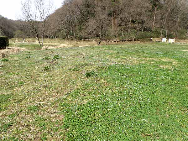 途中の草地にはオオイヌノフグリが咲いていました。生田緑地中央広場で予定されている草地広場はどうなるのかな。