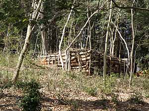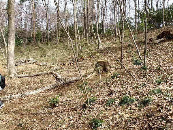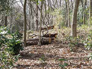「雑木林西地区《で見られた、伐採した樹木などの処理方法です。