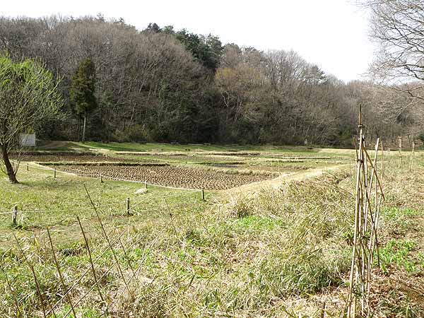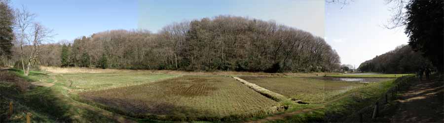 「雑木林西地区《から田んぼと背景の丸山の景観です。