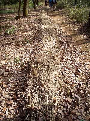 園内を見学して、除伐した樹木やササなどの処理方法、置き方には様々な工夫が見られました。参考になるヒントも得られました。