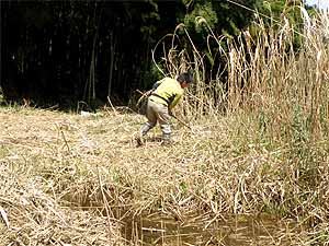 湿地再生地のヨシ刈り、上の段の田起こし