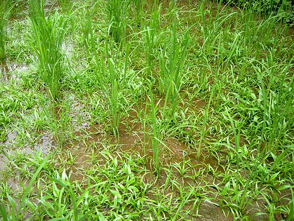 その後、スズランテープを回収し、田圃の中で大きくなり始めたコナギを取り始めましたが、