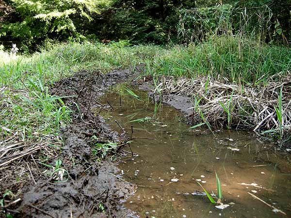 湿地の一番上の段の池の水が消えかけていたので、この日は湿地の水辺の手入れをすることにしました。
