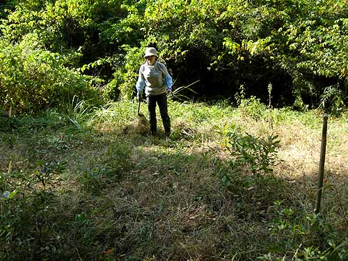 昨年、植樹祭のために大量に供出してしまいましたので、現在ある苗はせいぜい100本だと思いますが、雑草、エノコログサが優先していたようですが、