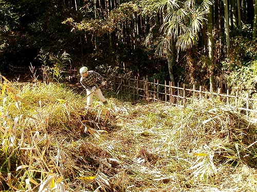 周辺のヤマグワ、地面に寝てしまっていたヨシ、ミヤマシラスゲなどを刈り取りました。