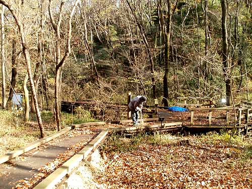 落葉は木道の上から集めました。