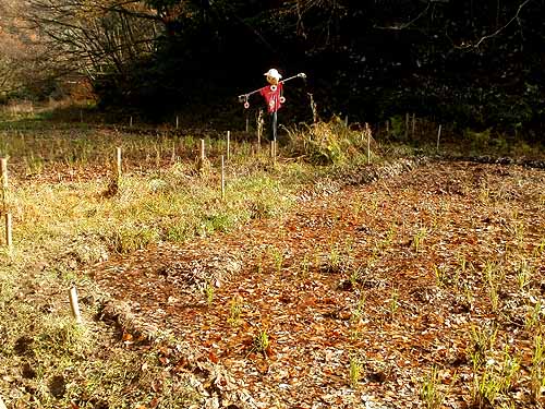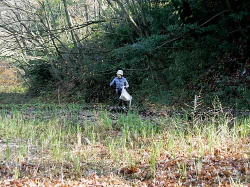 落葉を集めては上の田圃に運び入れました。
