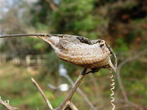 枯れ草の茎に、コカマキリの卵がありました。