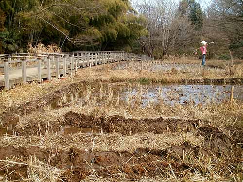 下の田圃の裏の水流は普段は田圃に入れている水を止めて計測します。