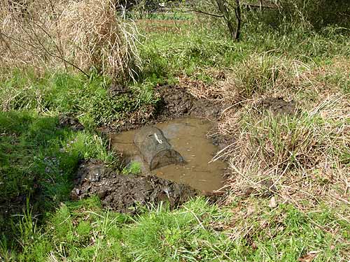 周囲のヤマグワや枯れたススキを刈り取り、溜まった土砂をジョレンで取り出しました。