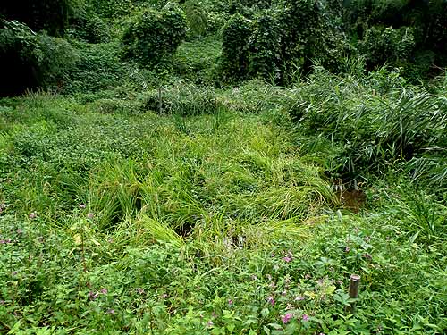 草地の中央部に出てきたアカバナを避けて、オダは谷戸を横切る方向に一列につくることにしました。