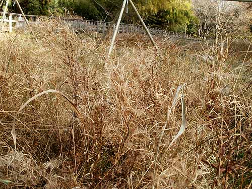 当該地区のアズマネザサは野鳥が潜り込めるヤブとして残していますが、汚らしくなって来園者が不快に感じるようにはしたくないので、