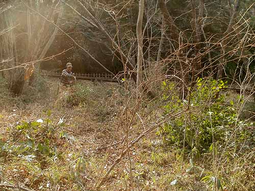 その後、放置された結果、サクラ、ハンノキなどが樹林を形成した場所です。