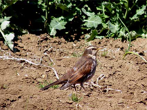 調査をしているとツグミが飛来して、近くの畑に降りました。