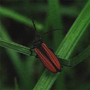 スジグロボタルはミヤマシラスゲやシラコスゲの葉の上で見られますが、