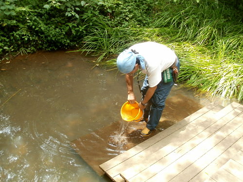 流れを変更してから直ぐに調査したので透視度は低くなってしまいました。