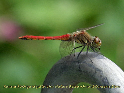 谷戸へ降りる階段の途中で、コノシメトンボがササの先端に止まっていました。