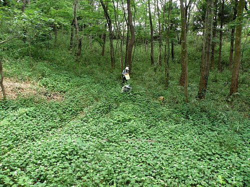 当日は、副会長の小泉さんが活動フィールドを案内してくださり、種子植物やシダ植物の調査を行いました。