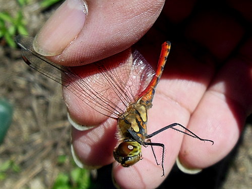 シオカラトンボ♂がいました。見慣れたシオカラトンボとは違うような、塩を吹いているような感じがします。
