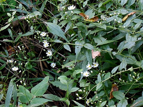 ヤマグワ等の除伐、ススキ、カナムグラ等の刈り取り、水流の管理 日時 2013/10/12(土) 10:30〜14:00 晴 場所 生田緑地 湿地 参加者 岩田臣生、岩田芳美 湿地の手入れを始めることにしました。 しかし、真夏の陽気に作業は捗りません。 水路の流れが途中で消えていました。 ジョレンを持って来なかったので、足で踏んで、穴を塞ぎました。 今年は、改めて、全流程を改修する必要がありそうです。 ツゲ、ヤマグワ、ウツギ、ヤマザクラ、モミジなど畦に生えていた実生を伐りながら、下草を刈りましたが、 10m程の範囲しかできませんでした。 ススキの下にはアザミやゲンノショウコが咲いていました。