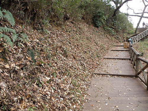 ピクニック広場東階段上斜面の草刈り 日時 2014/1/24(金) 11:00〜14:00 晴後曇 場所 生田緑地ピクニック広場東階段上斜面 参加者 岩田臣生、(岩田芳美) ピクニック広場東側の木製階段の上側の斜面(崖面)のアズマネザサ、様々な実生などの刈り取りを行いました。 これはハンショウヅルという植物やタマノカンアオイなどの保護が目的です。 ハンショウヅルはキンポウゲ科センニンソウ属のつる性低木で、花は前年の茎に咲きます。 冬だからといって全面を刈ってしまうと、春になって発芽してきたとしても花を見ることができません。 またタマノカンアオイは常緑です。 このため、ここは地上部の全てを刈り取ってもよい斜面ではありません。 ハンショウヅルは木本だといっても細くて、この時期はどう見ても枯草にしか見えません。 実際、簡単に折れてしまいますが、冬芽はしっかりついています。 アズマネザサなどと絡み合ってしまった糸を解いていくような作業で、しかもその糸が簡単に折れてしまう細くて乾いた枯草でできている、そんな状況です。 人任せにすれば、折られることを心配しなければなりません。 そこで、ここは一人で作業することにしました。 また、斜面に登ることで土を掻き落とすことの無いように、生田緑地運営共同事業体の大畠さんから脚立を借りて作業を行いました。