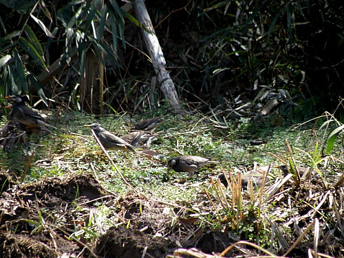 11:00 A 下の田圃裏の水流 2月の調査時にも倒れ掛かってきていたモウソウチクを除伐しましたが、今回、更に2本が倒れ掛かってきていました。 今日は鋸を持参していなかったので除伐できませんでしたが、近いうちに片付けておきたいと思います。 H 上の田圃への導水路 田圃の奥にムクドリの群れが来ていました。 皆、夢中で地面を漁っています。 特定の場所に集まっているのが気になります。 何があるのでしょうか。