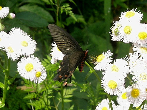 田圃付近のハルジオンにジャコウアゲハが来ていました。