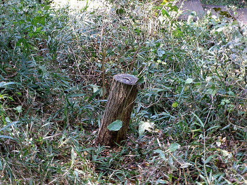雑木林の手入れ 日時 2014/10/28(火) 9:40〜12:00 晴 場所 生田緑地 萌芽更新地区 参加者 岩田臣生、細川洋子 萌芽更新地区の下部に繁茂していたヤマグワと枯れたタケニグサを除伐し、今年1月の里山倶楽部で萌芽更新を目指して伐採したコナラ3本とクヌギ1本の手入れをすることにしました。 特に、7月時点で萌芽していなかったコナラ1本がどうなったかを確認したいと思っていました。