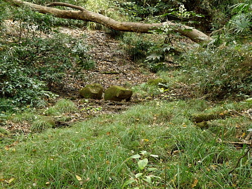 もう一つは、崖面から滴り落ちる水が排水溝を越えて園路に広がっている所です。 ここの排水溝の泥あげを行いました。 排水溝に接している園路部分を生物の生息環境として扱わせてもらっています。 そのために園路が濡れた状態になっているというのは管理として適切ではないと思います。
