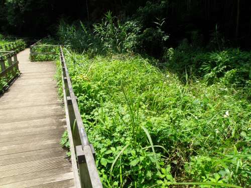 木道沿いのカナムグラ刈り 日時 2016/7/14(木) 10:00〜12:30 晴 場所 生田緑地 上の田圃地区の木道西側 参加者 岩田臣生、鈴木潤三、田村成美 上の田圃の下の段の末端の土嚢堰付近にあった三つの大きな水漏れ穴を塞ぎ、アメリカザリガニ 3匹を駆除しました。 僅かばかりの水の中には、シュレーゲルアオガエルの幼生がいました。 田圃にはオオシオカラトンボ♂が数匹、縄張りを監視していました。