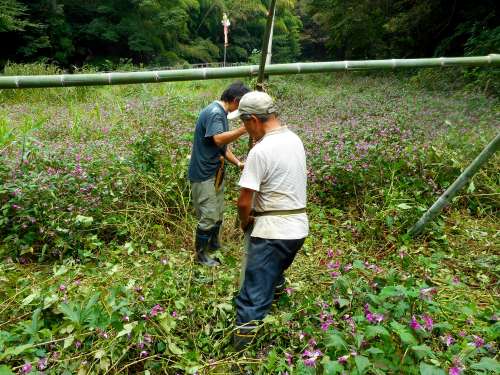 ツリフネソウが花盛りでしたので、できるだけ残すようにして、作業に入る場所をつくることから始めました。