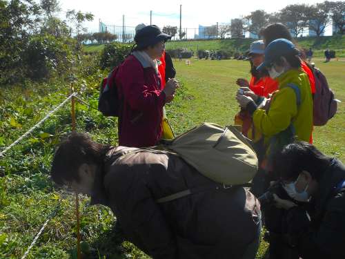 草の根交流・水辺調査 日時 2016/11/12(土) 10:00〜12:00 晴 場所 多摩川 とどろき水辺の楽校 参加者 とどろき水辺の楽校:事務局(鈴木眞智子)、メンバー 5名 かわさき自然調査団水辺調査班:岩田芳美、藤間X子 8名 多摩川中流域のとどろき水辺の楽校のメンバーと植物観察会を行いました。 講師は、水辺調査班の藤間X子が担当しました。
