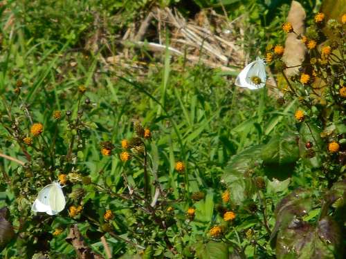 コセンダングサの花に、アオスジアゲハ、モンシロチョウが吸蜜に来ていました。