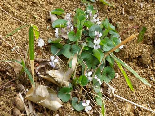 ピクニック広場東斜面は、草地化を目指して、2012年3月に、ミズキなどの樹木を伐採した地区です。 これによって、林床は明るくなったものの、春はタチツボスミレが咲いてくれるだけでした。 5年が経過して、今春はアオイスミレが開花してくれました。 植生管理としては、毎年末、アズマネザサ刈り、落葉掻き、キヅタ剥ぎを行っています。 落葉掻きは、2011年3月の福島原発事故による放射能汚染が生田緑地でも問題となり、数年間は控えていましたが、アオイスミレの開花は落葉掻きの成果だと思います。