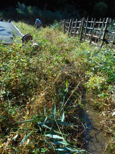 そこで、水路内で絡み合っていたオオミゾソバの茎は切除して、水路の流れを良くしました。