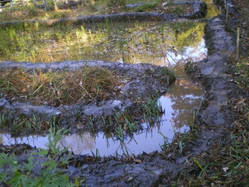 田圃と水路の泥上げ、ハンノキ林下湿地の水の管理