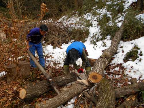萌芽更新地区の伐採樹木の伐り直し(水田ビオトープ班)