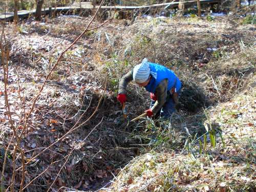 谷戸の水流のアズマネザサ刈りなど(水田ビオトープ班)