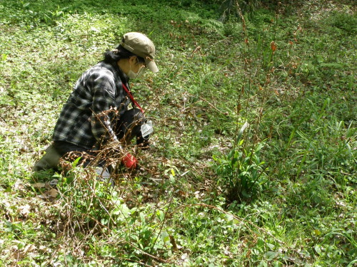 帰り道のピクニック広場で発芽し始めたトモエソウの周囲の除草を行いました。 通りかかりの来園者が、「生田緑地には、こんな山野草があるのか!」と感心していました。 神奈川県植物誌によれば、県内では広く分布するが、個体数は多くないとある植物です。
