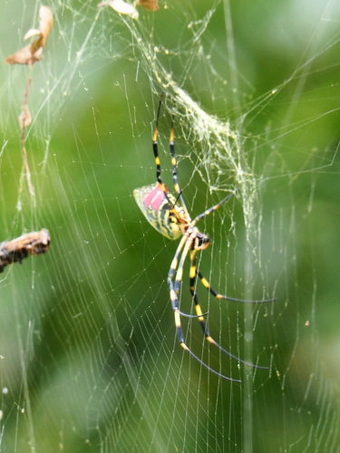 ウメモドキの紅い実が鮮やかに輝いていました。 林床のカラタチバナにも、赤い実がありました。 キチジョウソウの花が盛りを迎えたようです。 ジョロウグモは大きくなりましたが、例年に比べれば、まだ小さい感じです。