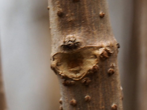 さて、これらの萌芽枝が高木層を形成するようになるまでには、まだ少しの年月が必要です。 こうした活動では、イメージした目標に到達するまでの過程も楽しめるようにすることが肝心だろうと思っています。 ニワトコの葉痕は何に見えますか。