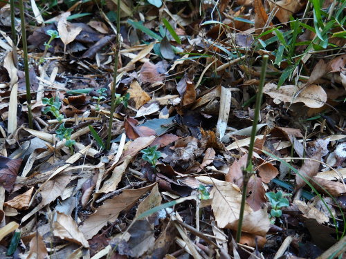 谷戸へのアクセスが遠回りとなるため、この日は、桝形山頂部西斜面のフデリンドウ保護のためのアズマネザサ刈りを行いました。 この活動は、2010年から行っていますので、アズマネザサは少し弱体化していますが、フデリンドウは期待している程には増えてくれません。